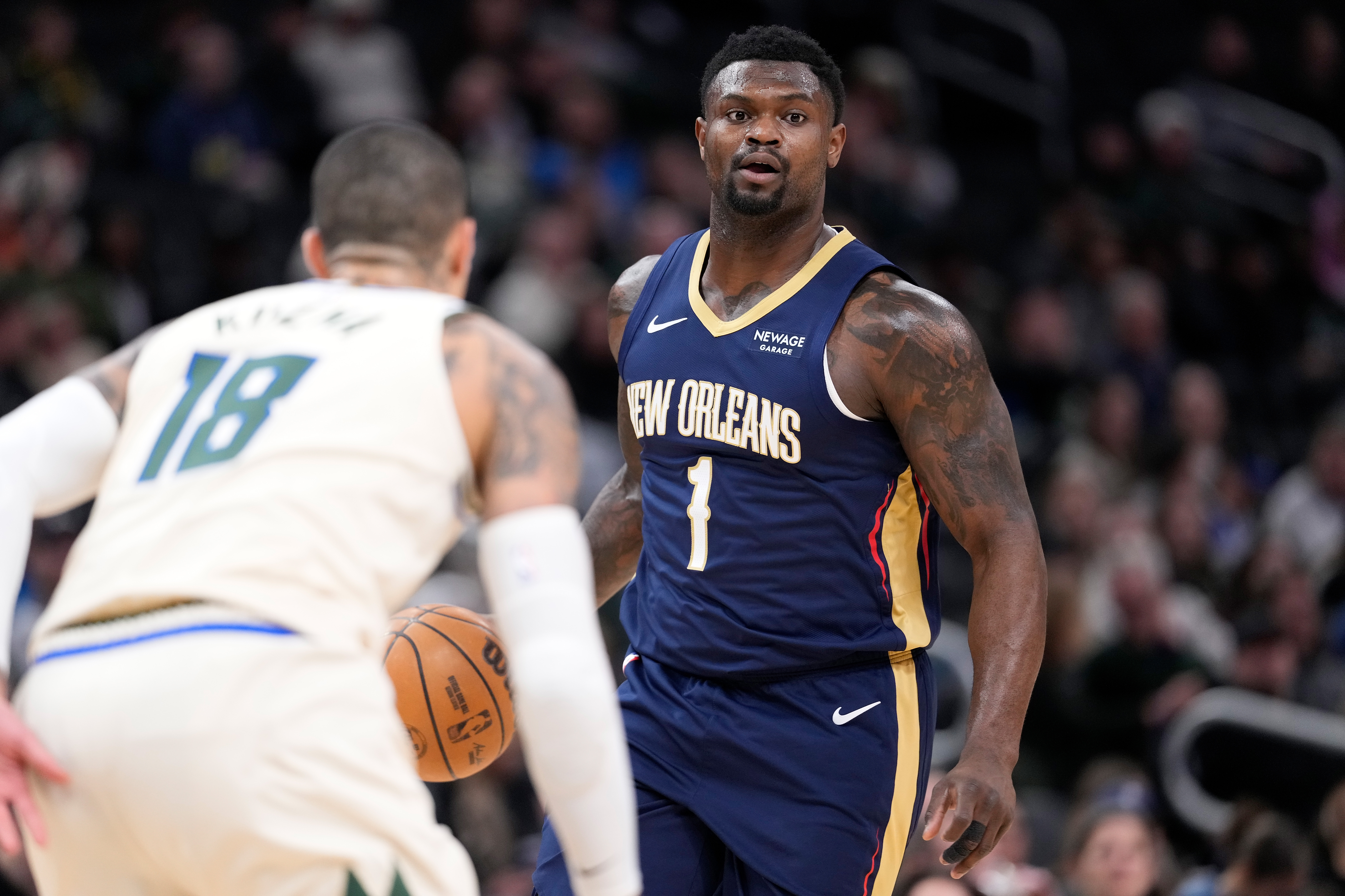 Getty MILWAUKEE, WISCONSIN – 4 DE FEBRERO: Zion Williamson, número 1 de los New Orleans Pelicans, controla el balón en la segunda mitad contra los Milwaukee Bucks en el Fiserv Forum el 4 de febrero de 2026 en Milwaukee, Wisconsin. (Foto de John Fisher/Getty Images)