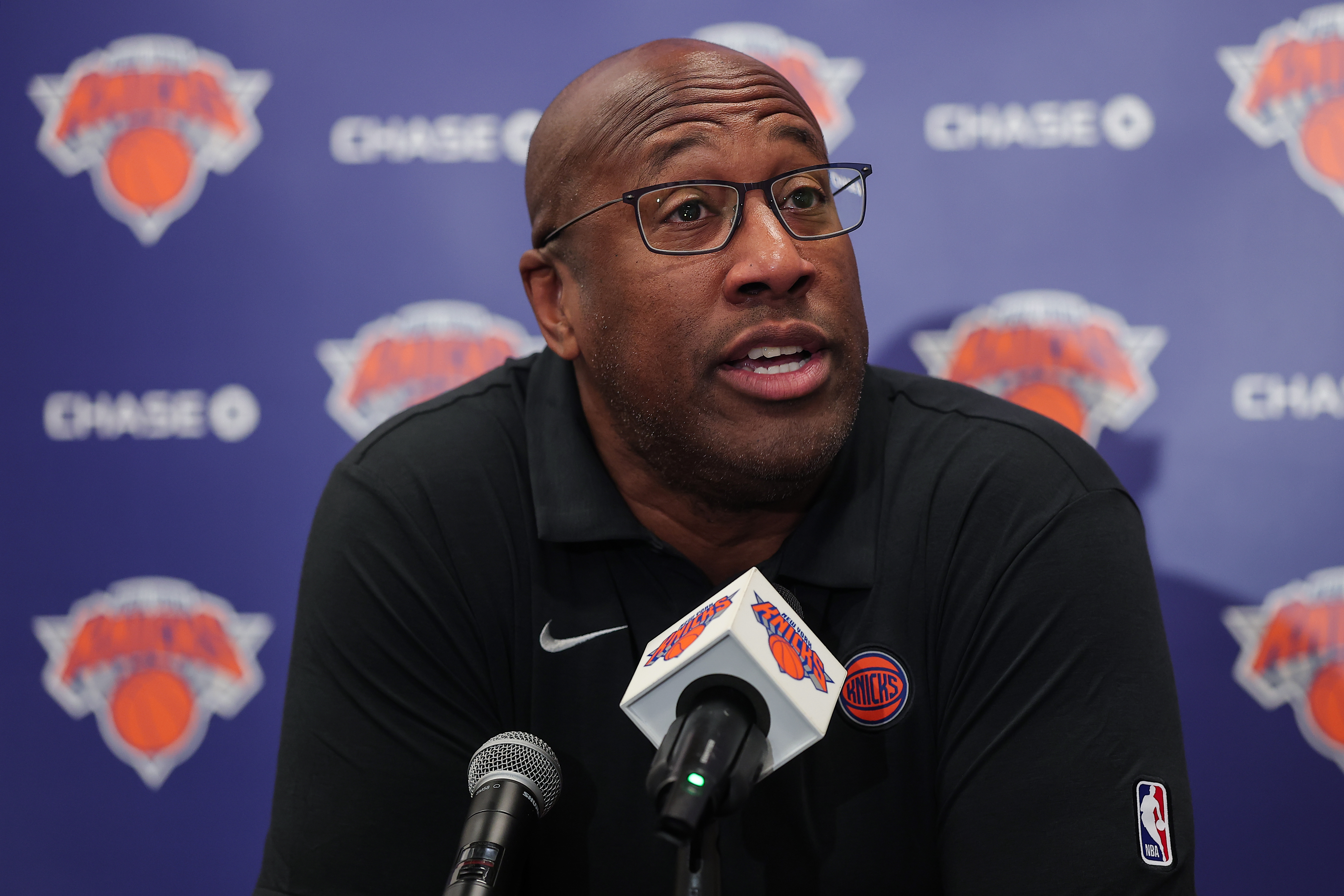 Getty TARRYTOWN, NUEVA YORK – 23 DE SEPTIEMBRE: El entrenador jefe Mike Brown de los New York Knicks habla con los medios en las instalaciones de entrenamiento de los Knicks el 23 de septiembre de 2025 en Tarrytown, Nueva York. (Foto de Dustin Satloff/Getty Images)