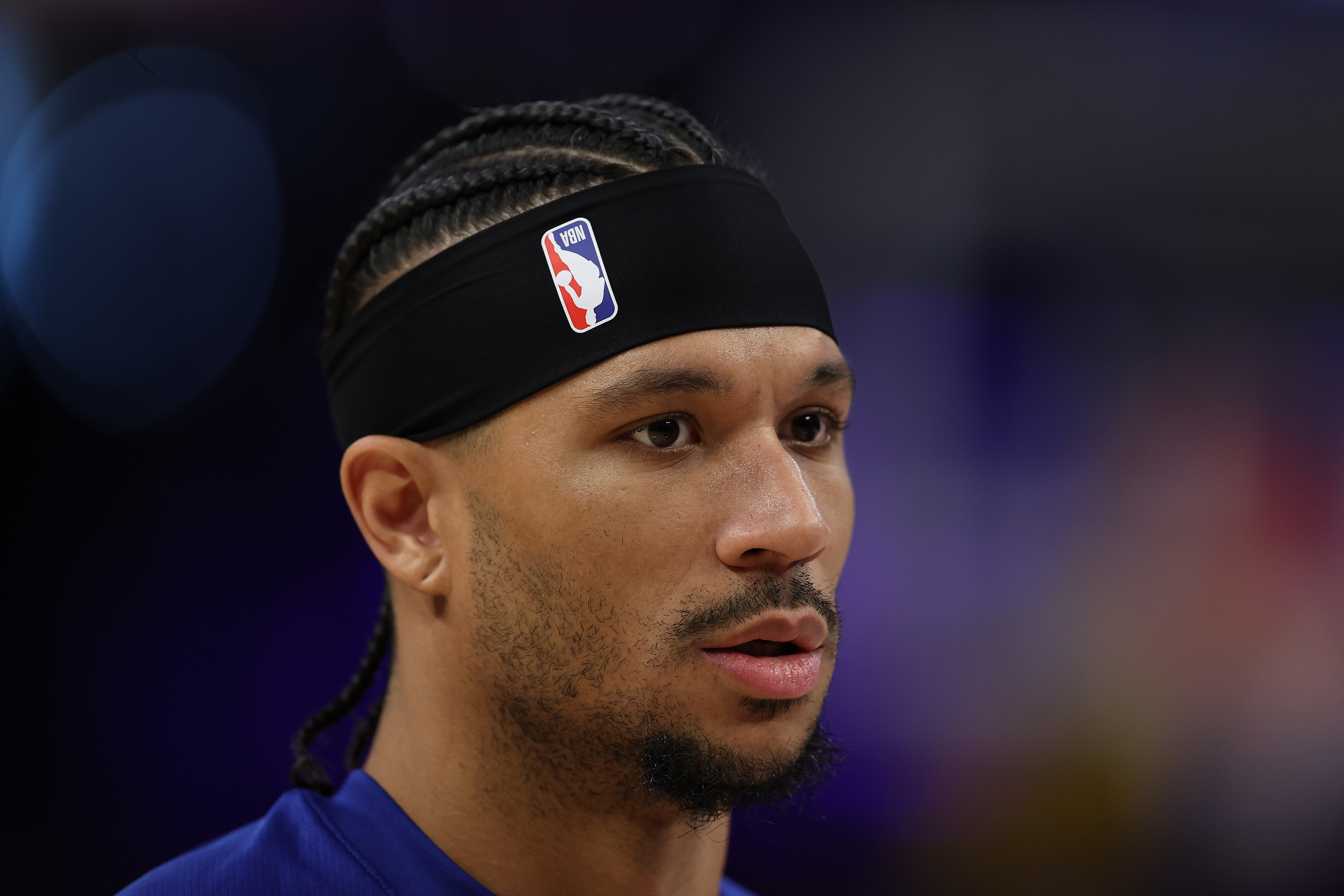 Getty LOS ÁNGELES, CALIFORNIA – 8 DE MARZO: Josh Hart, número 3 de los New York Knicks, antes de un partido contra Los Angeles Lakers en el Crypto.com Arena el 8 de marzo de 2026 en Los Ángeles, California. (Foto de Ronald Martinez/Getty Images)