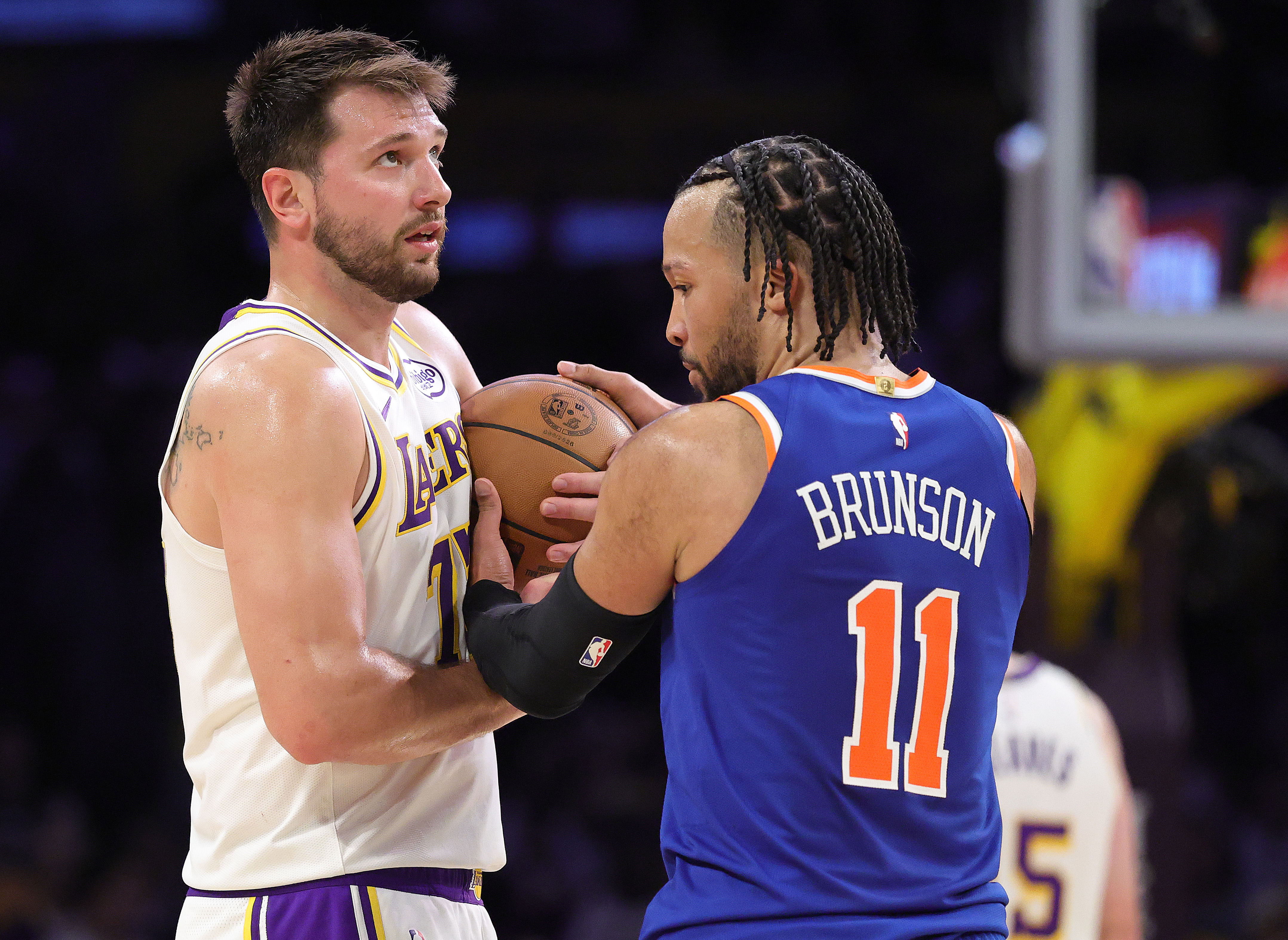 Getty LOS ÁNGELES, CALIFORNIA – 8 DE MARZO: Luka Doncic #77 de Los Angeles Lakers y Jalen Brunson #11 de los New York Knicks en Crypto.com Arena el 8 de marzo de 2026 en Los Ángeles, California. (Foto de Ronald Martinez/Getty Images)