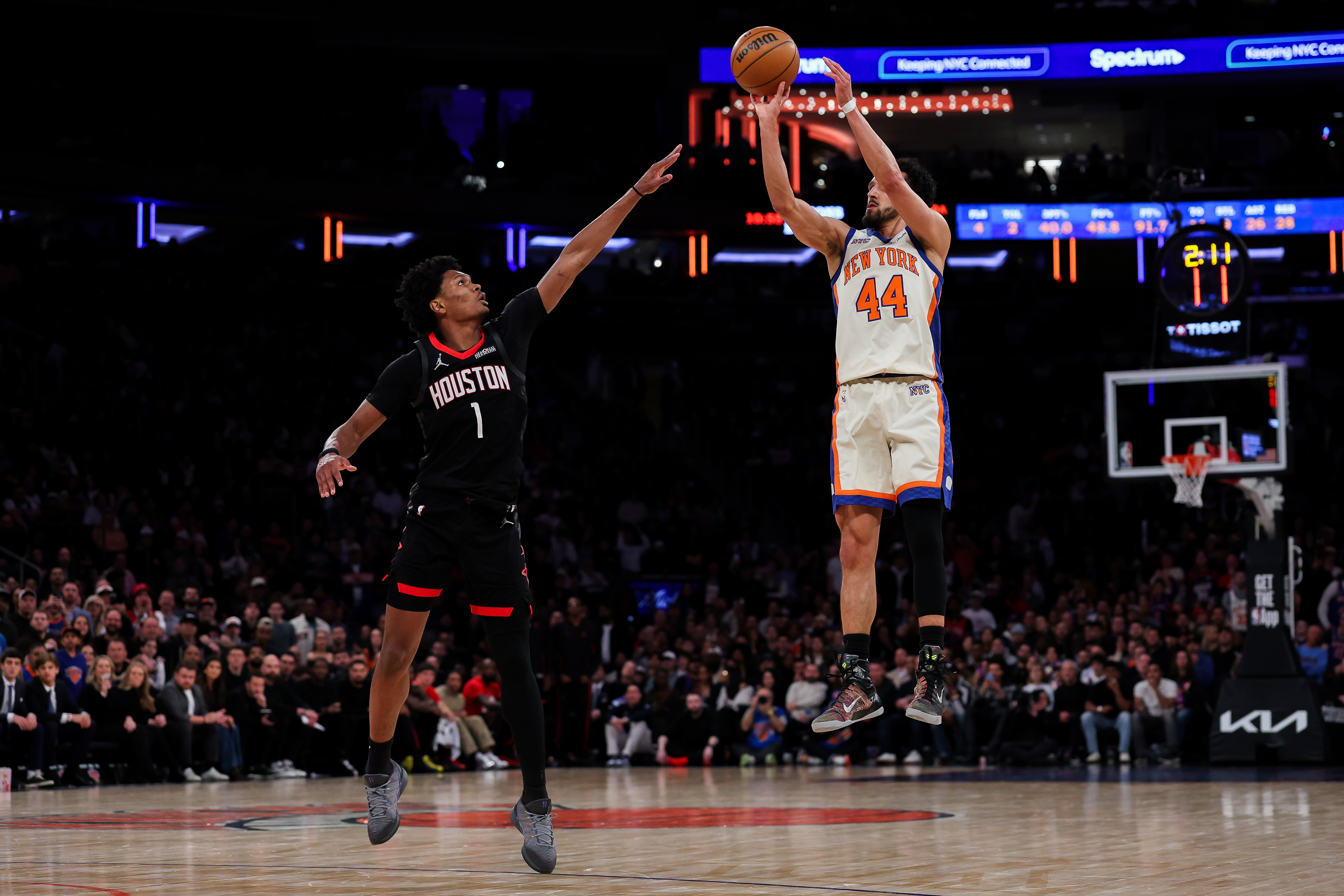 Getty NUEVA YORK, NUEVA YORK – 21 DE FEBRERO: Landry Shamet #44 de los New York Knicks lanza el balón durante el partido contra los Houston Rockets en el Madison Square Garden el 21 de febrero de 2026 en la ciudad de Nueva York. (Foto de Ishika Samant/Getty Images)