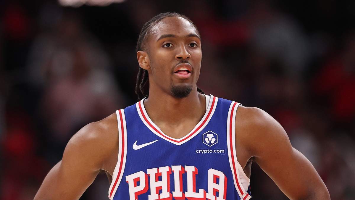 Getty Tyrese Maxey se dirigió a Jared McCain el martes por la noche.
