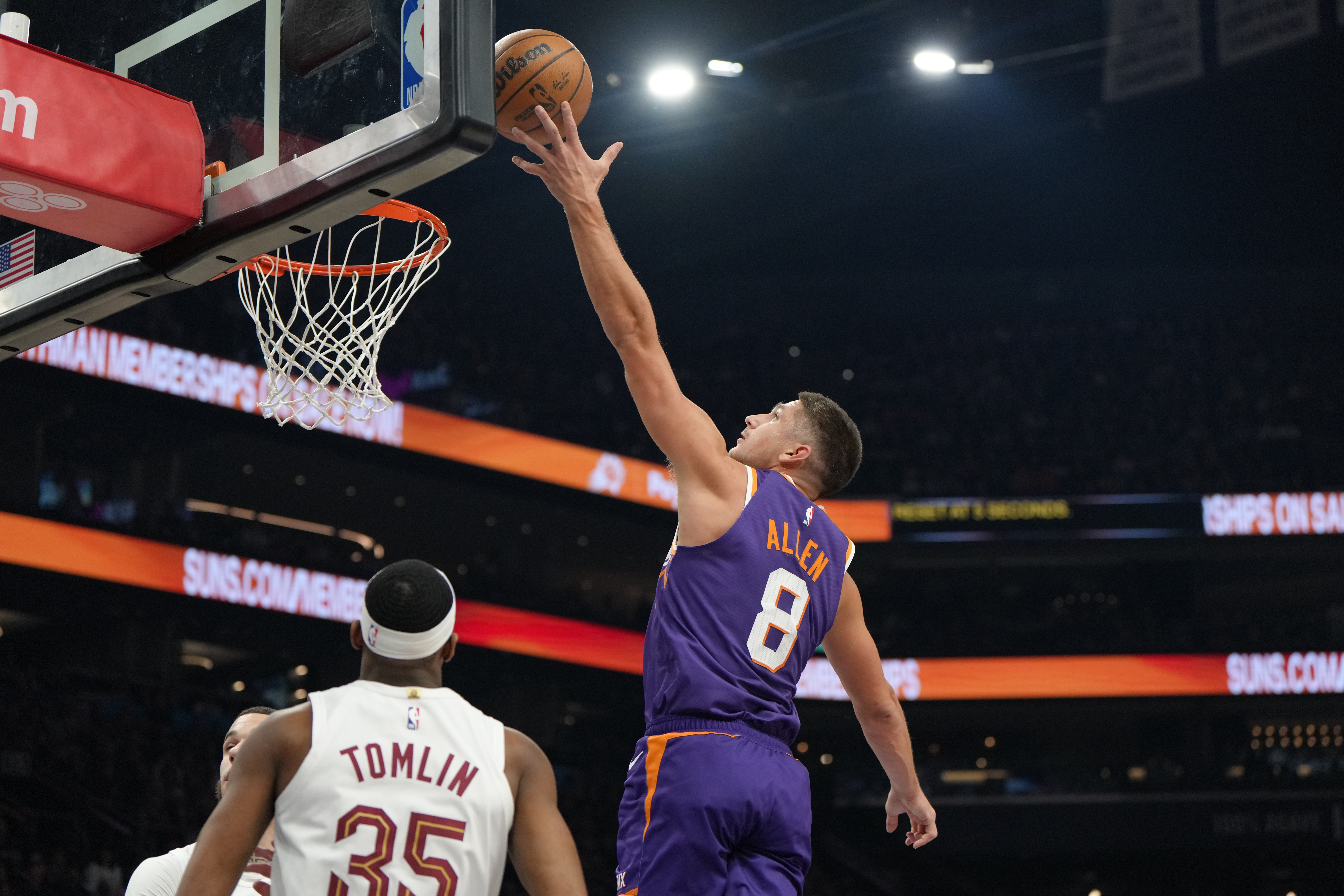 Getty Grayson Allen #8 de los Phoenix Suns penetra hacia la canasta durante la primera mitad del partido de la NBA contra los Cleveland Cavaliers en el Mortgage Matchup Center el 30 de enero de 2026 en Phoenix, Arizona.