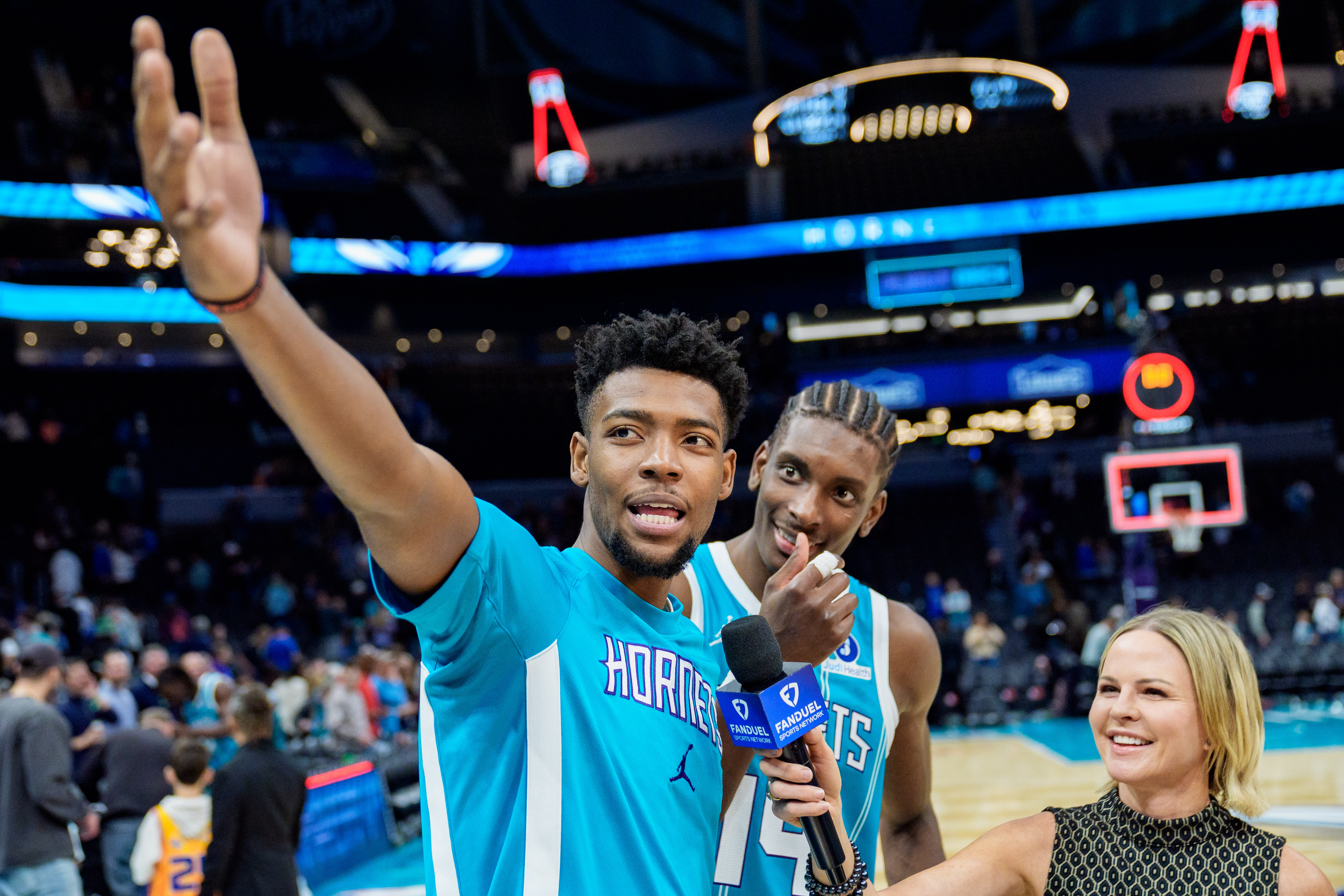 Getty CHARLOTTE, CAROLINA DEL NORTE – 3 DE MARZO: Brandon Miller #24 de los Charlotte Hornets es entrevistado después de derrotar a los Dallas Mavericks durante su partido en el Spectrum Center el 3 de marzo de 2026 en Charlotte, Carolina del Norte. (Foto de Jacob Kupferman/Getty Images)