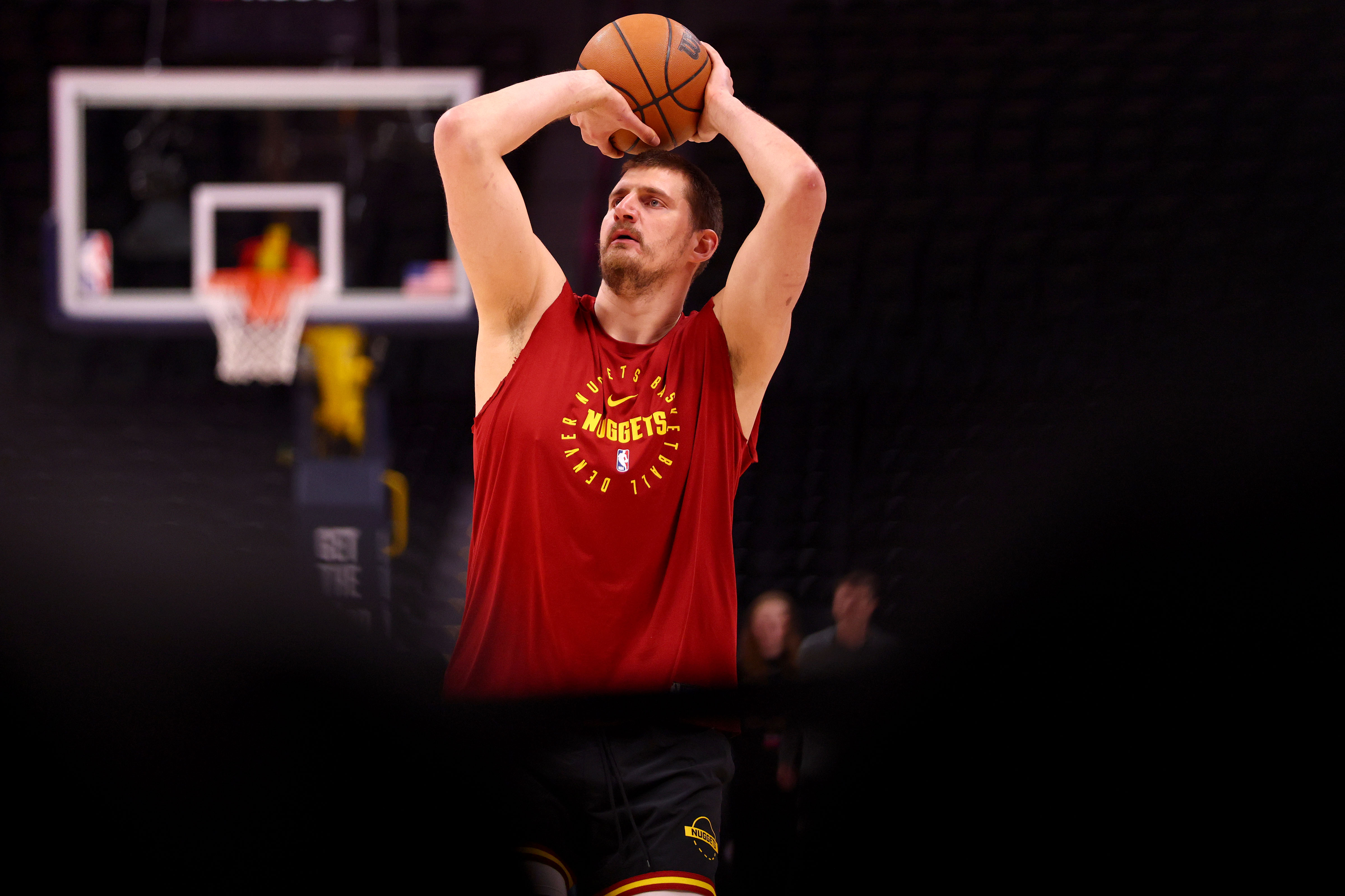 Getty DENVER, COLORADO – 25 DE FEBRERO: Nikola Jokic # 15 de los Denver Nuggets calienta contra los Boston Celtics en el Ball Arena el 25 de febrero de 2026 en Denver, Colorado. (Foto de Jamie Schwaberow/Getty Images)