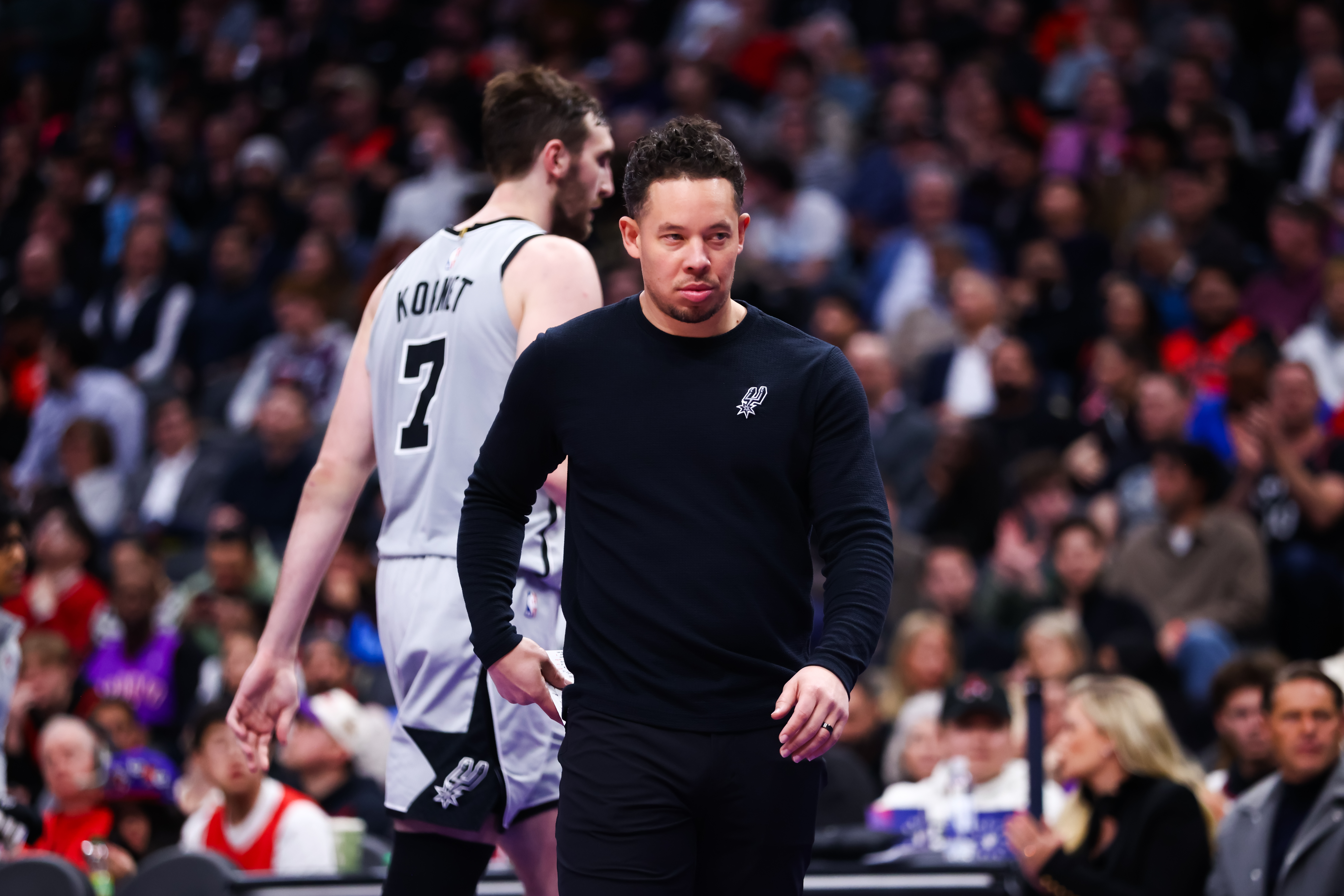 Getty El entrenador en jefe Mitch Johnson de los San Antonio Spurs camina por la cancha durante un tiempo muerto en la segunda mitad contra los Toronto Raptors en el Scotiabank Arena el 25 de febrero de 2026 en Toronto, Ontario, Canadá.