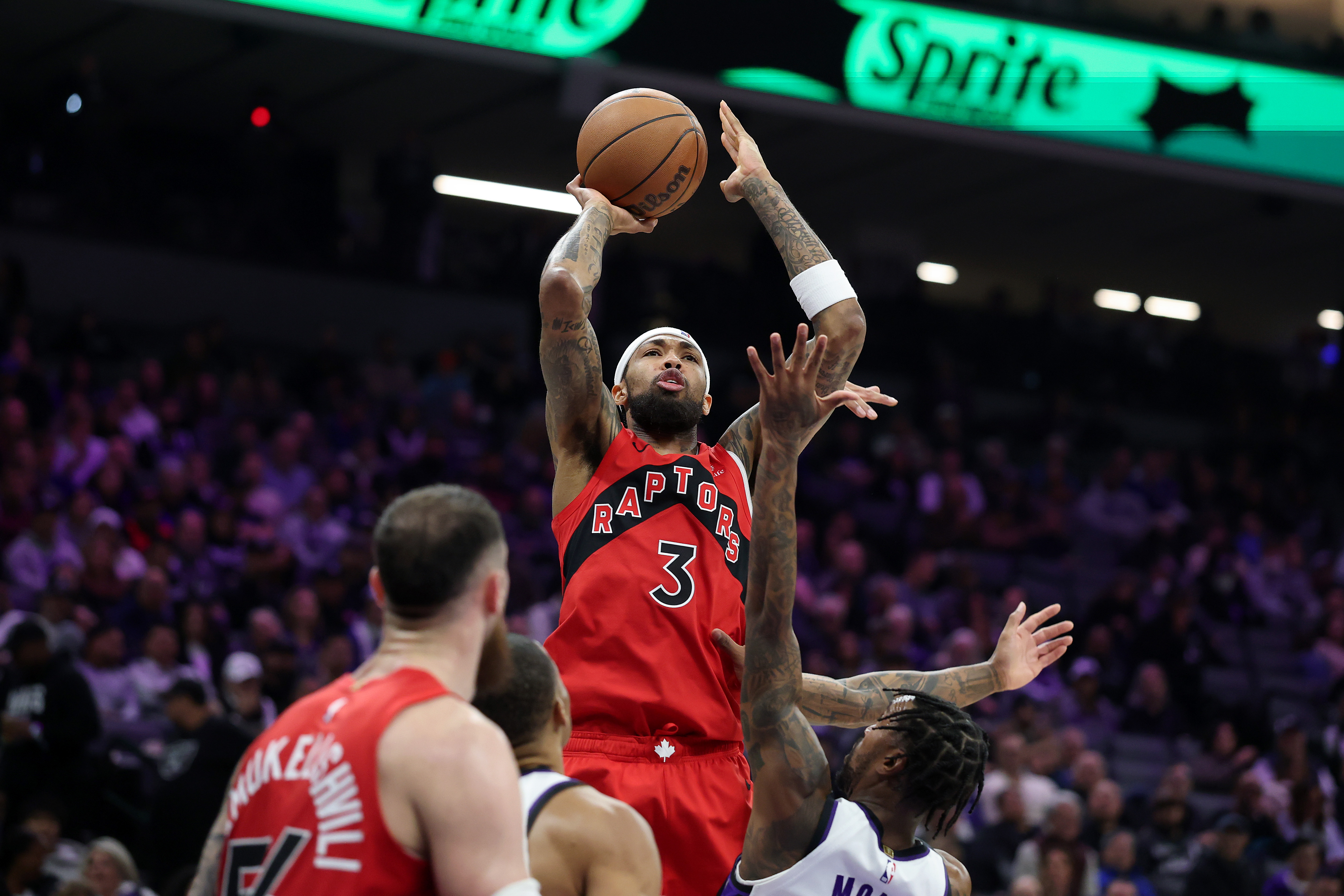 Getty SACRAMENTO, CALIFORNIA – 21 DE ENERO: Brandon Ingram #3 de los Toronto Raptors lanza sobre Malik Monk #0 de los Sacramento Kings durante la primera mitad en el Golden 1 Center el 21 de enero de 2026 en Sacramento, California. (Foto de Ezra Shaw/Getty Images)