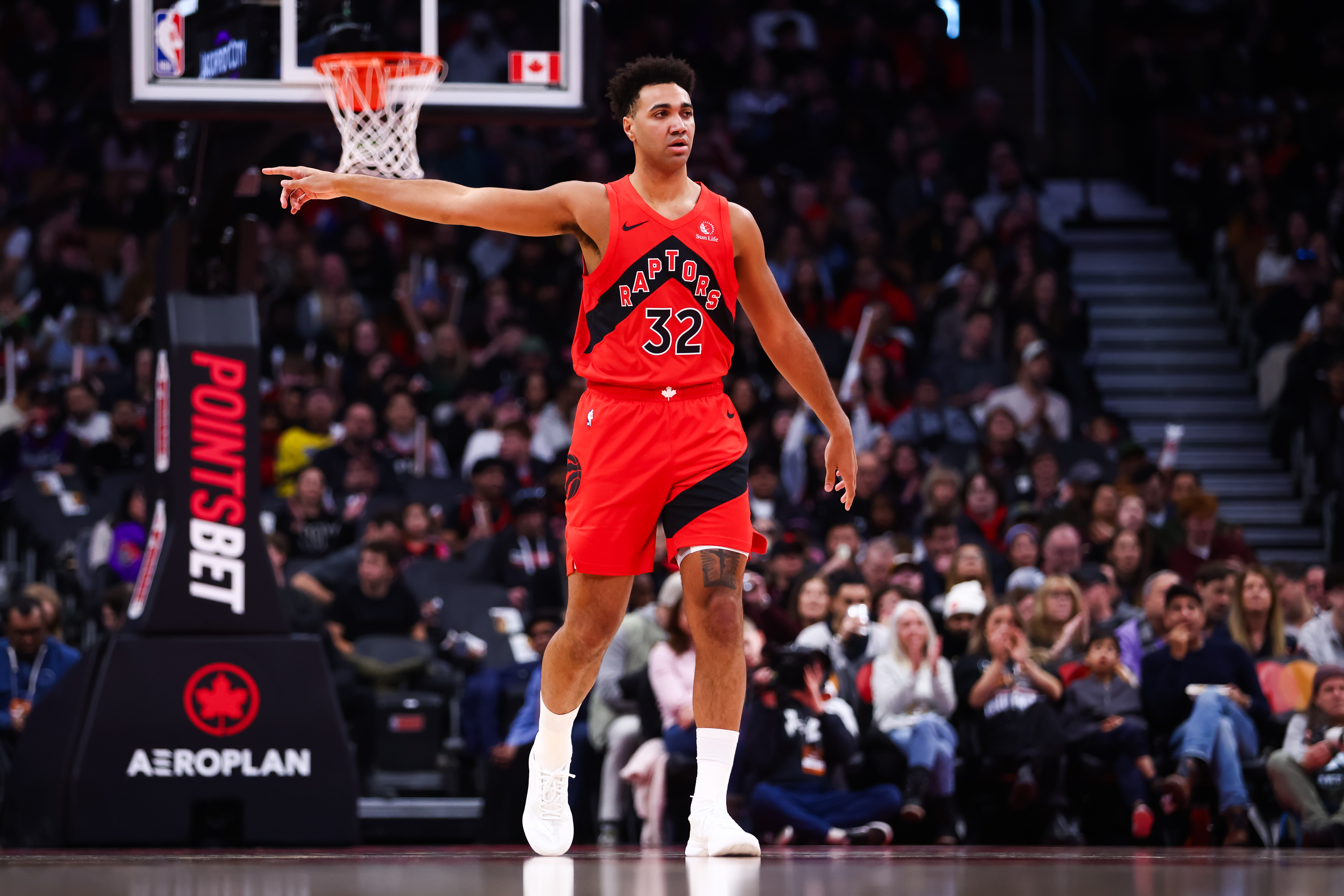 Getty TORONTO, CANADÁ – 8 DE FEBRERO: Trayce Jackson-Davis #32 de los Toronto Raptors está de pie en la cancha durante la primera mitad de su juego de la NBA contra los Indiana Pacers en el Scotiabank Arena el 8 de febrero de 2026 en Toronto, Canadá. (Foto de Cole Burston/Getty Images)