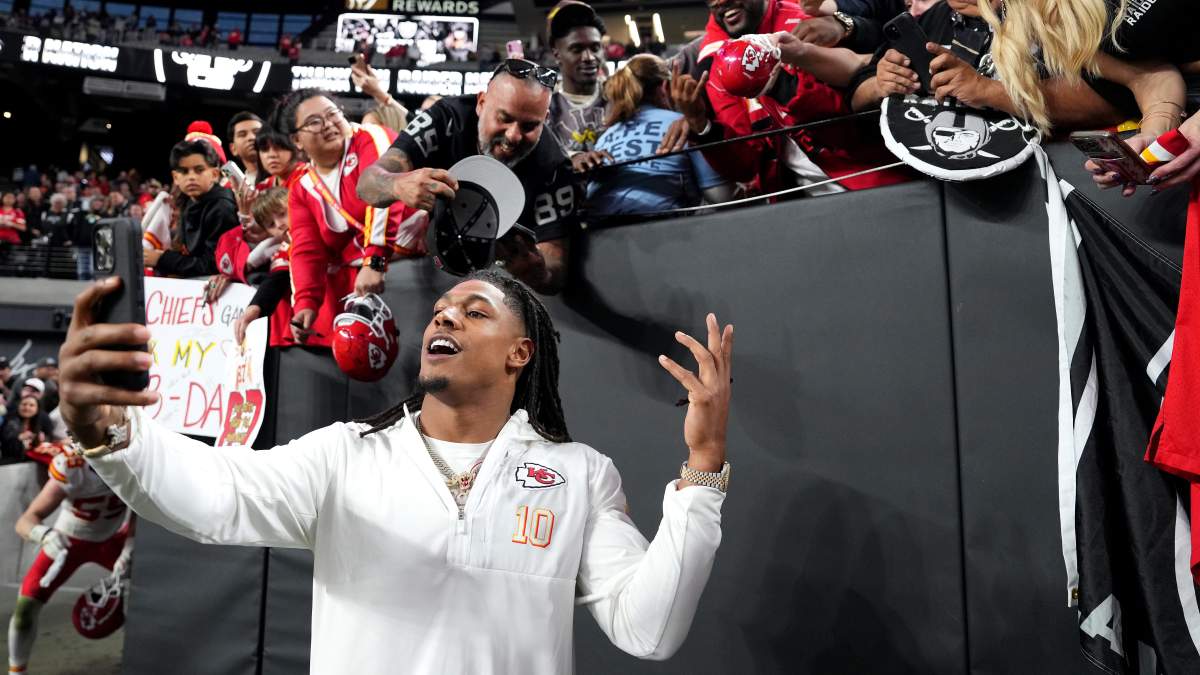 Getty KANSAS CITY, MISSOURI – 14 DE DICIEMBRE: Isiah Pacheco #10 de los Kansas City Chiefs lleva el balón durante el juego contra los Los Angeles Chargers en el Arrowhead Stadium el 14 de diciembre de 2025 en Kansas City, Missouri. (Foto de Jamie Squire/Getty Images)