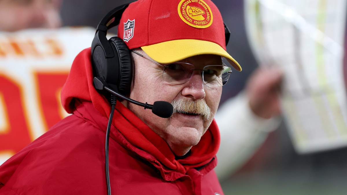 Getty El coordinador ofensivo de los Kansas City Chiefs, Eric Bieniemy, habla con el entrenador en jefe Andy Reid