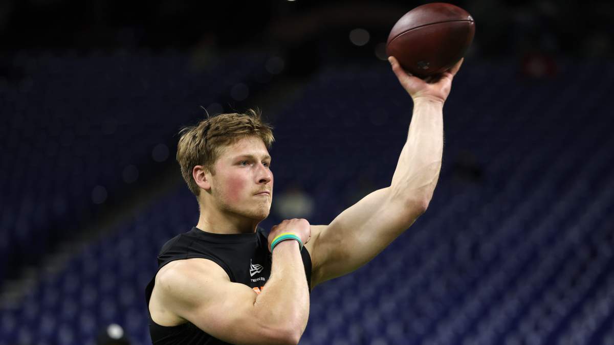 Getty Cole Payton lanza un pase durante el NFL Scouting Combine 2026 en el Lucas Oil Stadium.