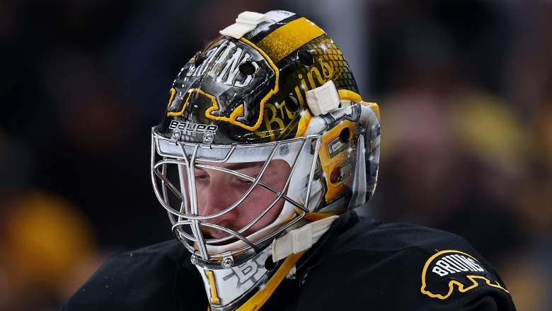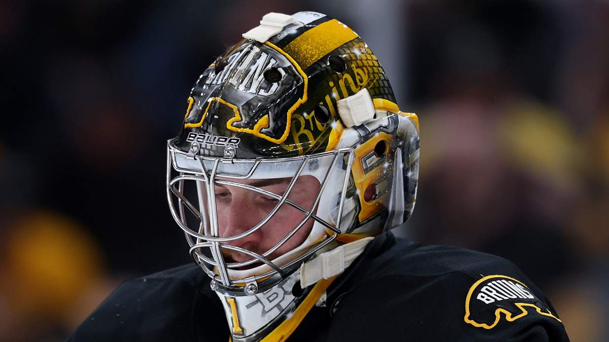 El portero de los Boston Bruins, Jeremy Swayman, les gritó a sus compañeros en el banquillo