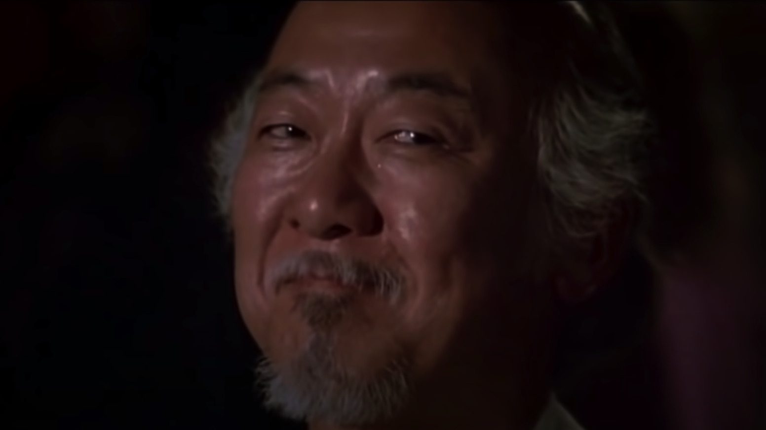 El Karate Kid tiene un final muy bueno. Daniel lanza la patada de la grúa, derrota a Johnny, y ataca su primer trofeo. El Sr. Miyagi mira con una sonrisa en su cara, y la película se desvanece hasta los créditos finales.